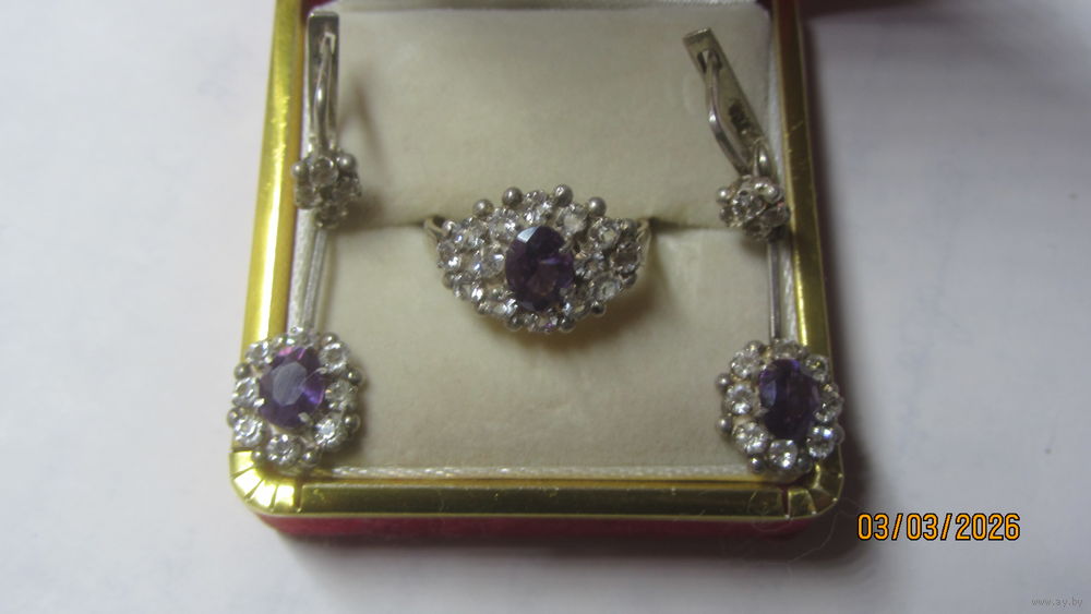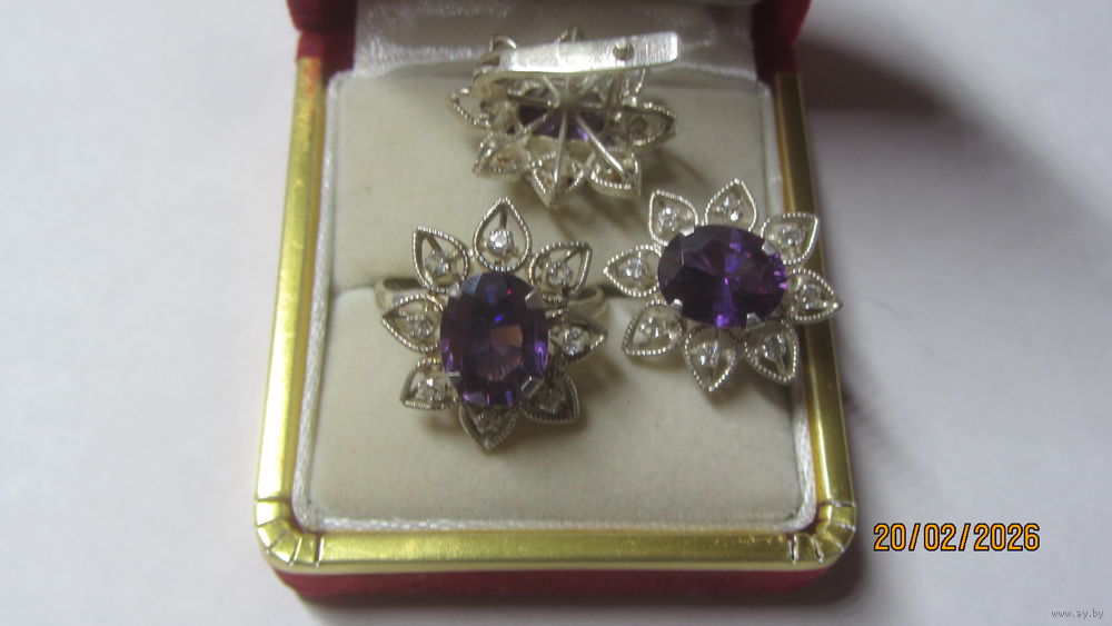 5) набор ,,аметист,,, вес 10,68 г.,кольцо 18,5 р-р. Цена 145.0 руб.