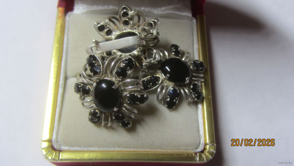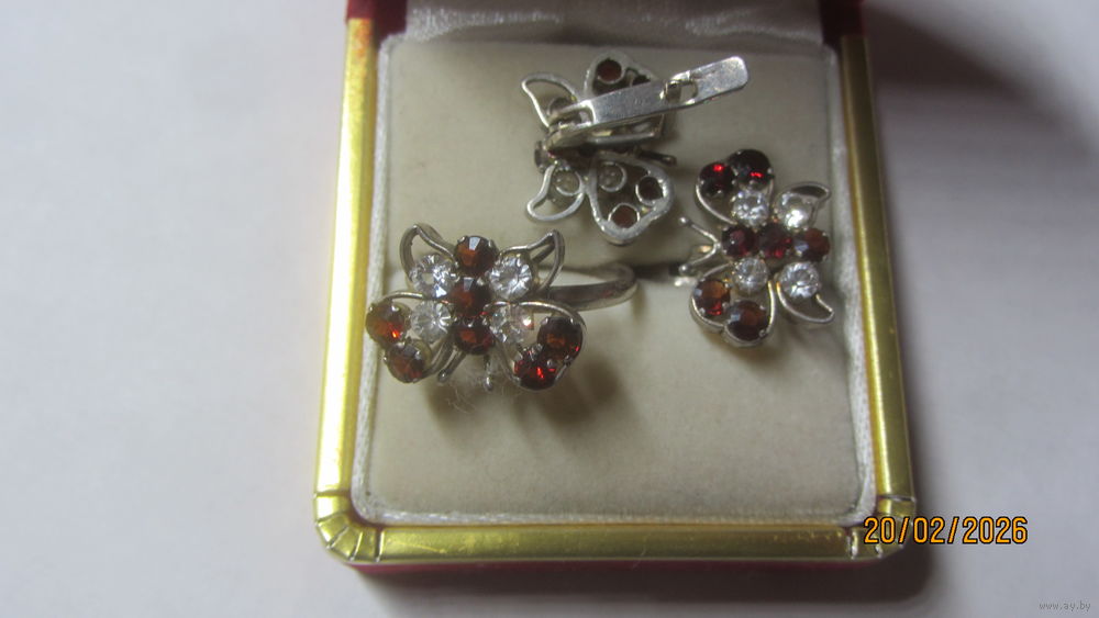 7) набор ,,бабочка,,- гранат с фионитами,вес 7,09 г. кольцо 17,5 р-р. Цена 110.0 руб.