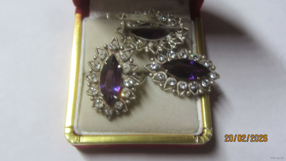 8)набор ,,аметист,,,вес 13,01 г.,кольцо 18 р-р.Цена 170.0 р.