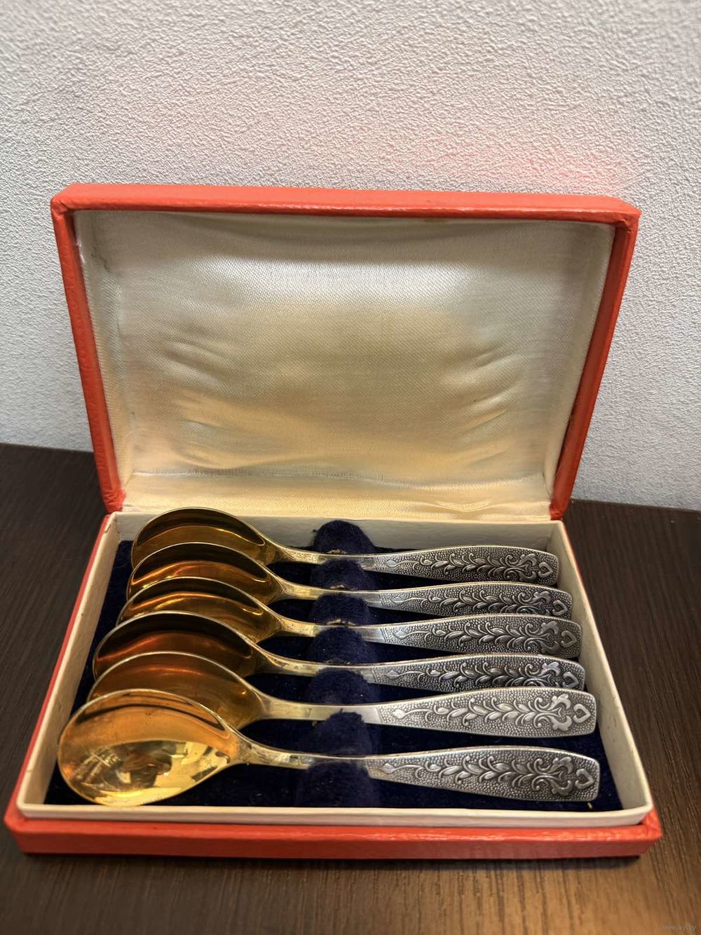 Винтажный набор мельхиоровых чайных ложек 6 штук серебрение с золочением в оригинальной коробке , состояние хорошее незначительные царапины , умеренные следы бытования состояние хорошее , хорошо подойдут в виде подарка или презента .