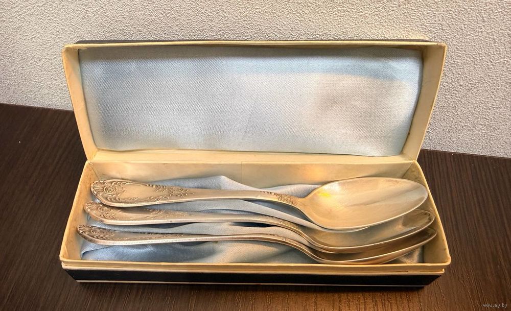 Состояние хорошее незначительные следы бытования , хорошо подойдут в виде подарка или презента , ложки в оригинальной упаковке времен СССР имеет презентабельный вид .