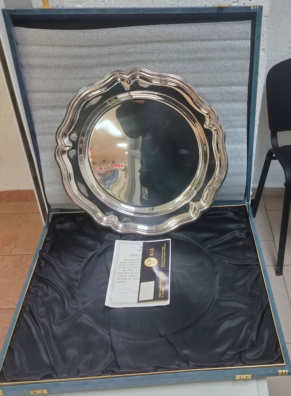 Винтажный посеребренный поднос , подойдет в виде подарка или презента , очень хорошая вещь , состояние идеальное , с документами и в презентабельной коробке ( чехле ) . Размеры диаметр 40 см вес 1100 грамм . размер коробки 52см на 49см .