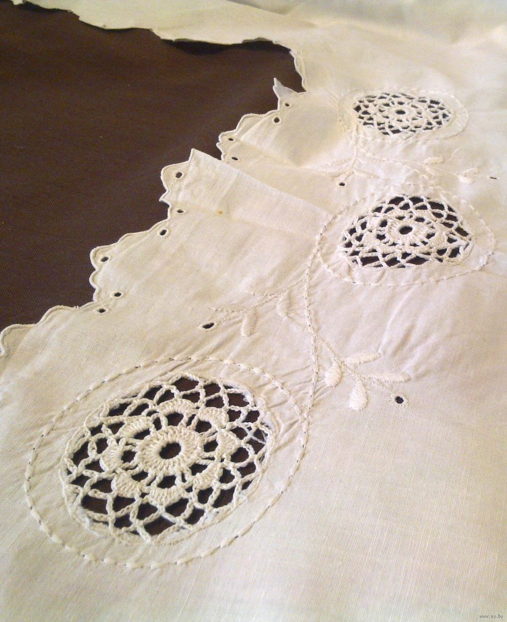 вырез оформлен ажурными вставками, белой гладью, ришелье