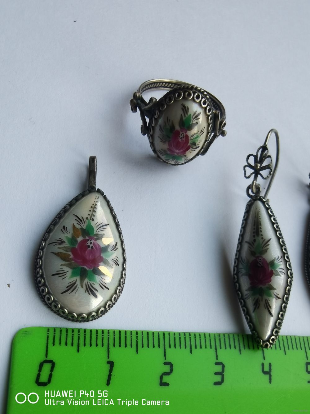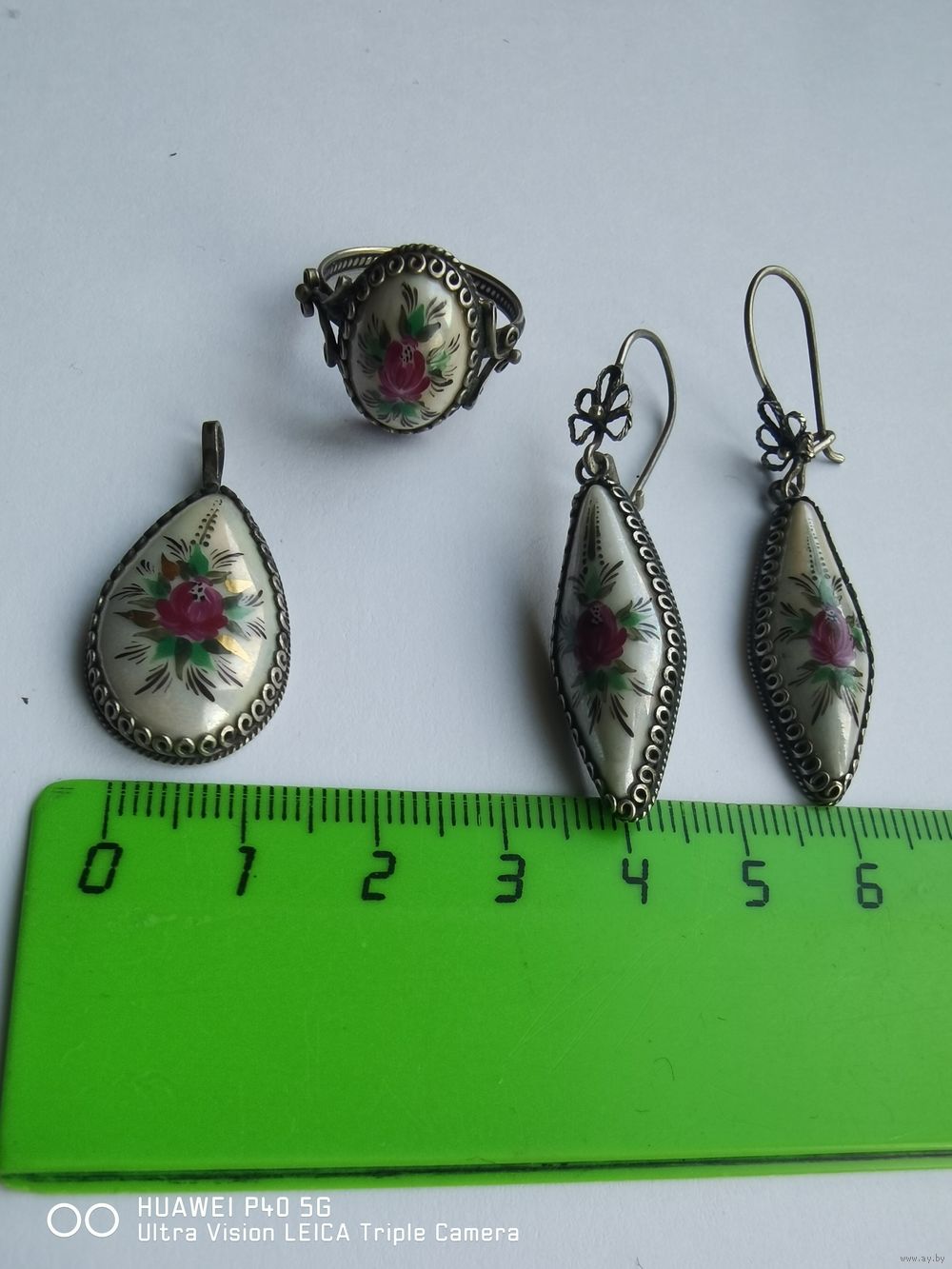 Винтажный полный набор финифть, Мельхиор ручная роспись СССР в очень хорошем состоянии самая привлекательная цена трёхдневный аукцион
