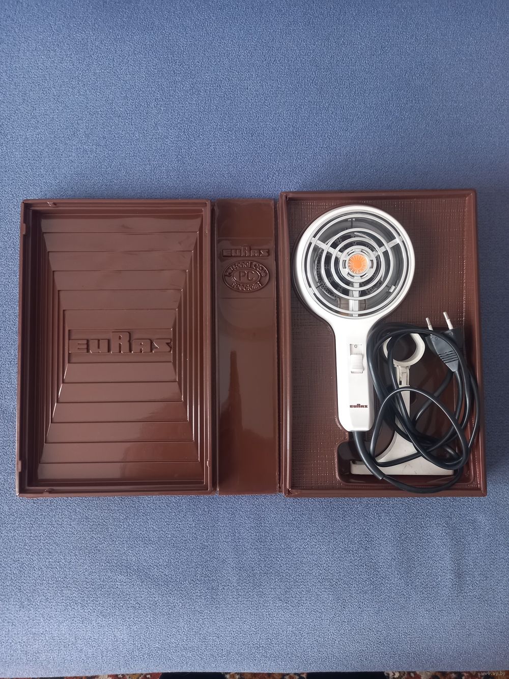 Винтажный рабочий ИФ фен Euras Sonnenwind 1960е гг ФРГ в коробке. Состояние фена отличное. Лампа работает. Греет. Лопасти крутятся. Состояние коробки снаружи не очень хорошее. Следы плохого хранения. Внутри и сам фен все блестит. Лот не чищен, не мыт. См. фото. Почта по 100% предоплате. Лучше личная встреча.