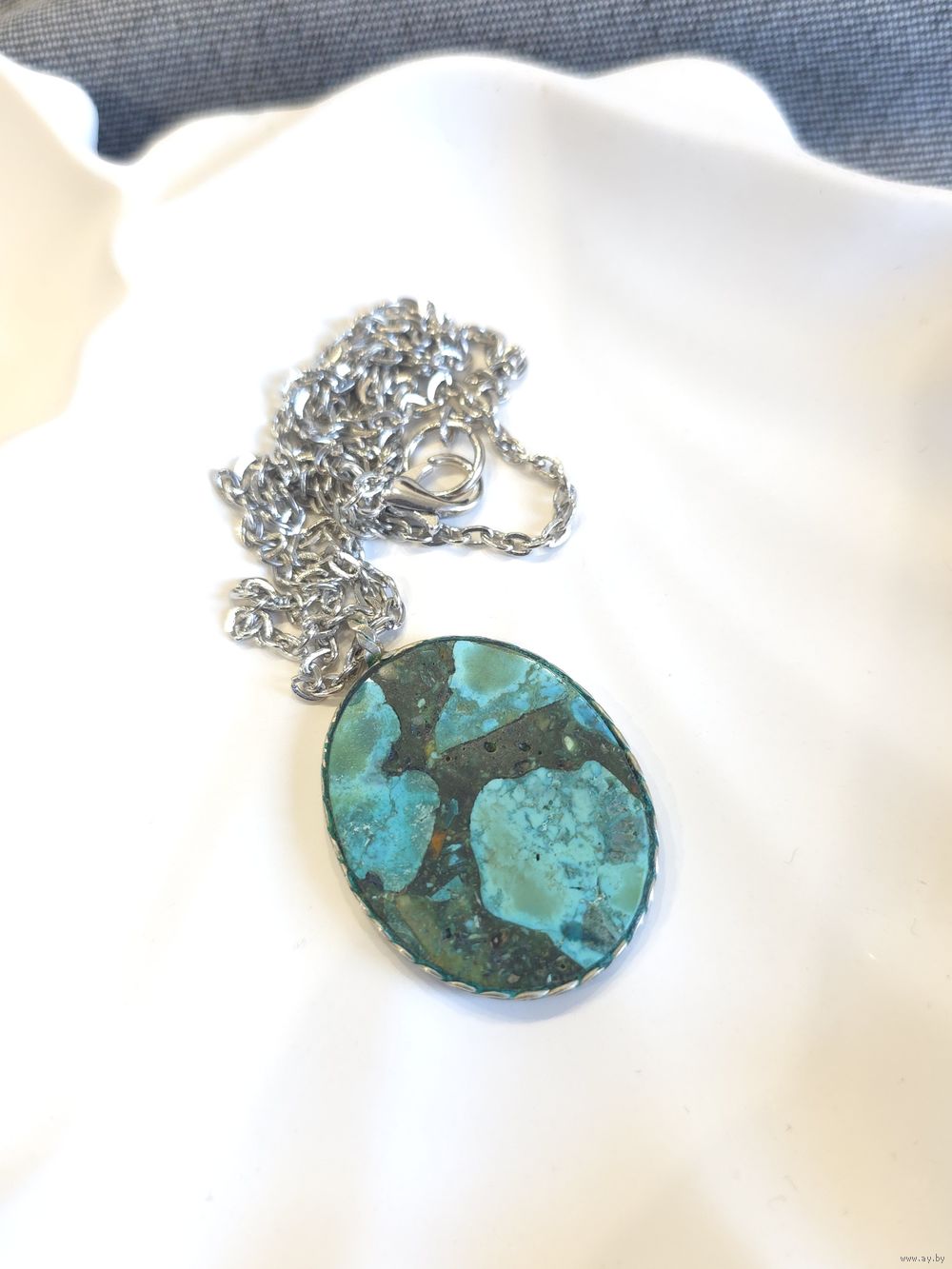 Кулон из крошки натуральной бирюзы. 80-х. Цепочка сталь.