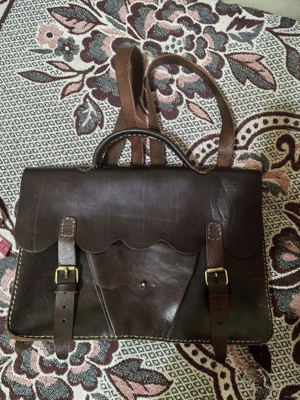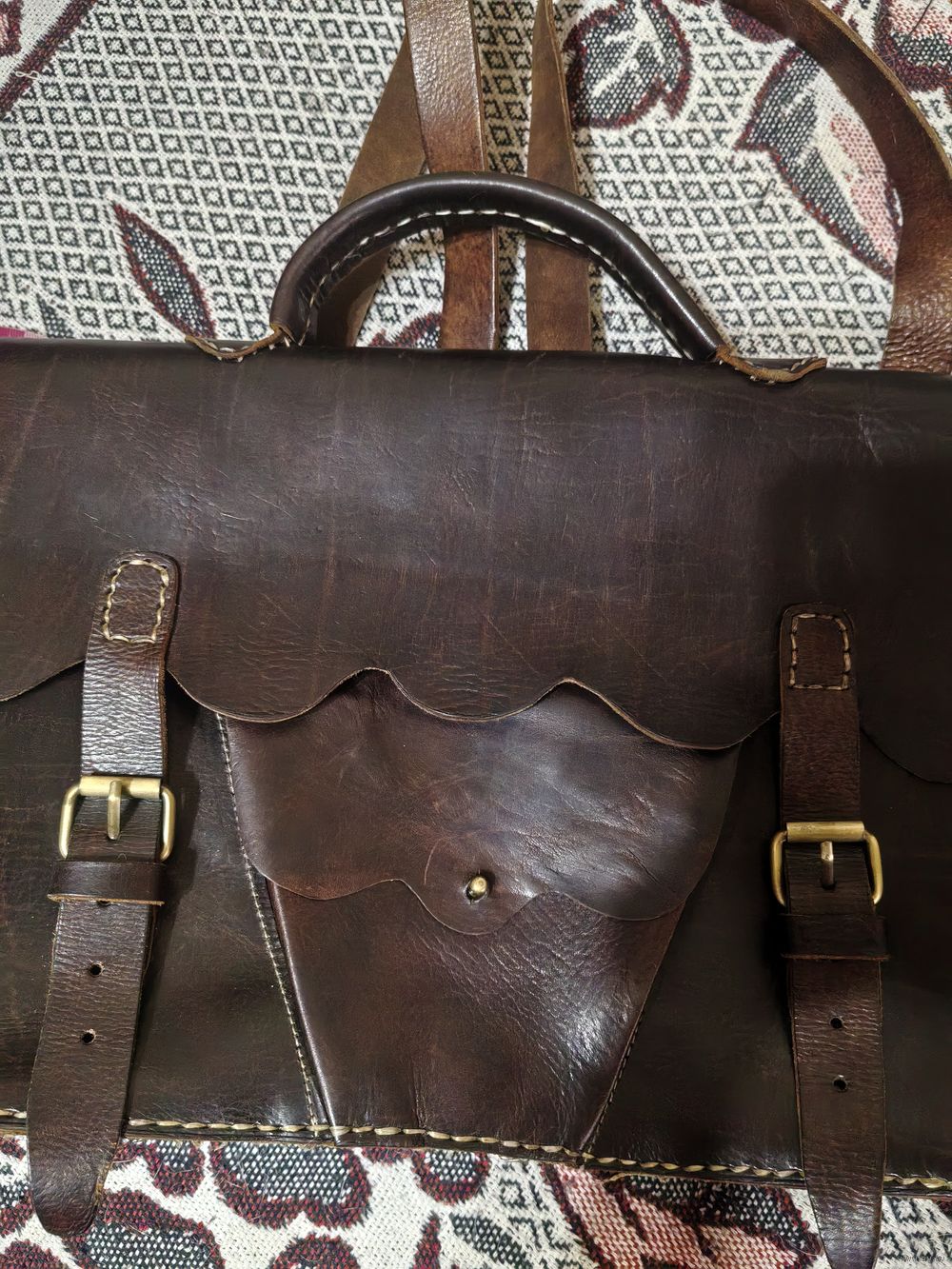 Кожаный аксессуар, сочетающий в себе как портфель, сумка мессенджер, рюкзака