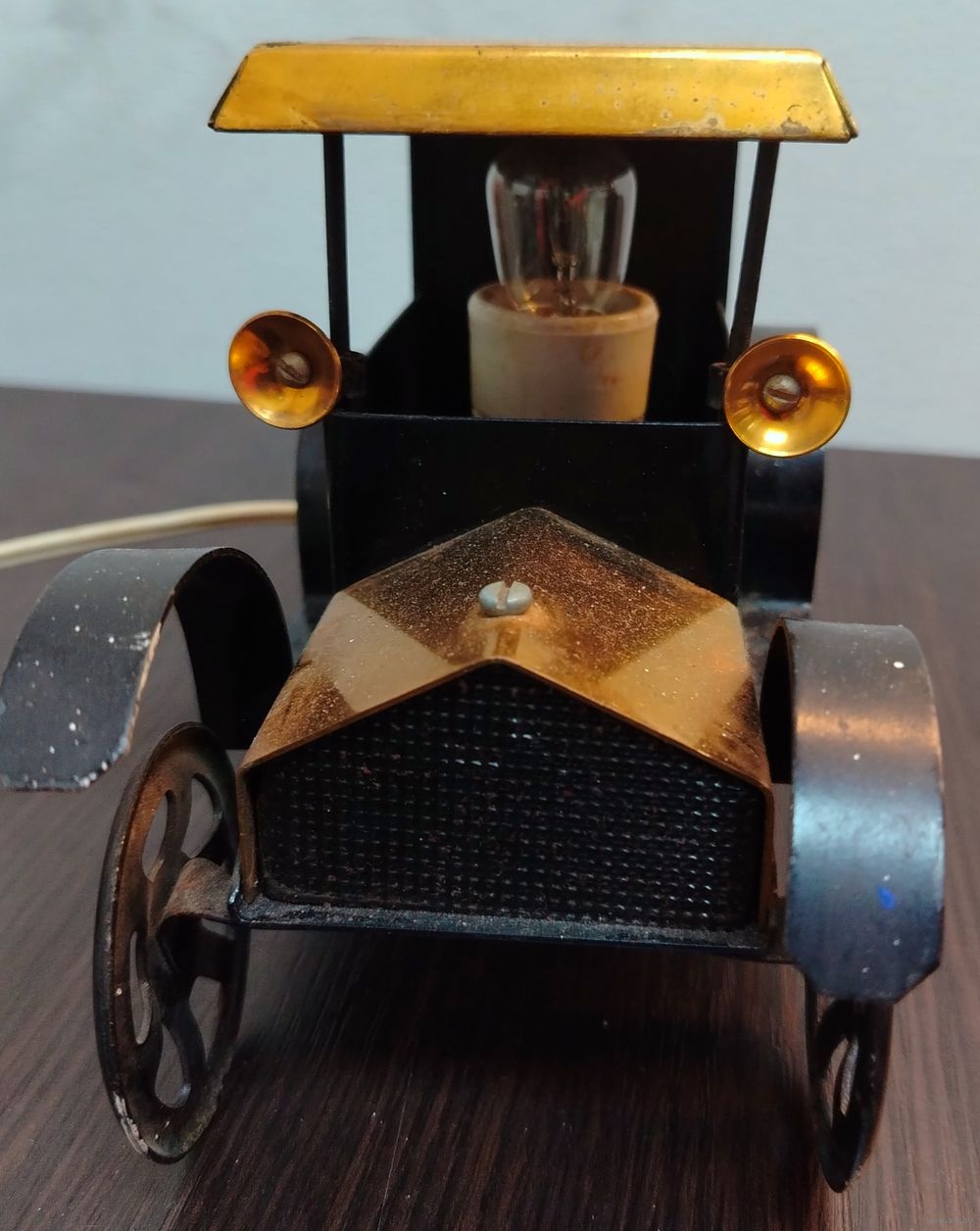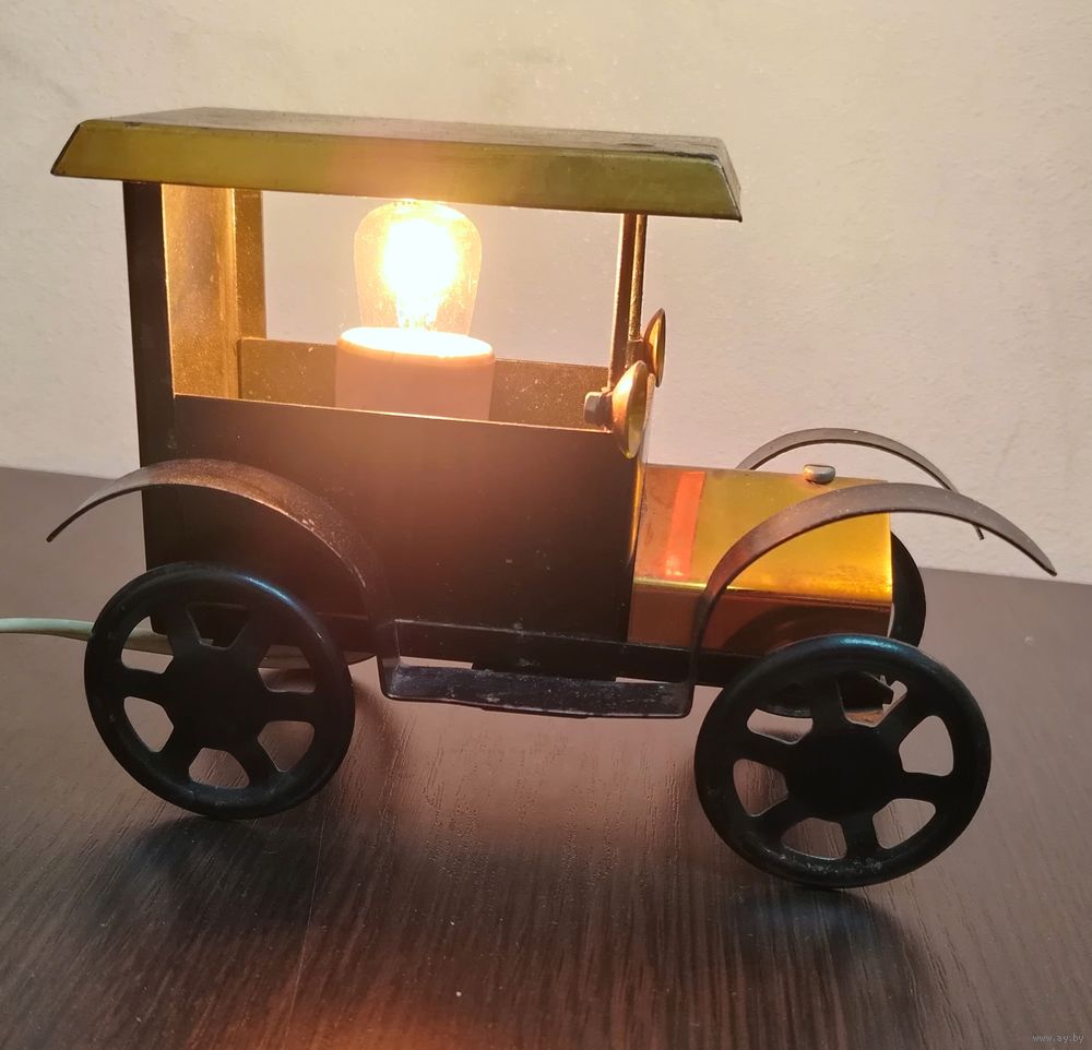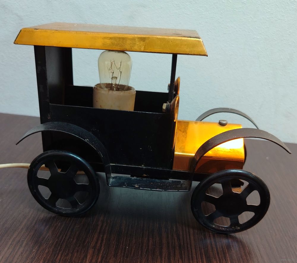 Винтажный советский настольный светильник - ночник в форме автомобиля . полностью в рабочем состоянии , вилка и выключатель имеются . размеры высота 14 ширина 18 см .