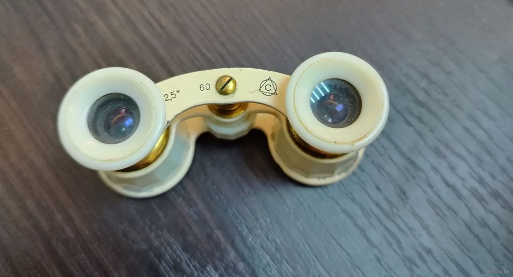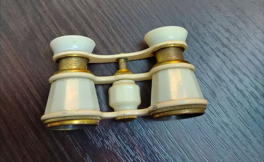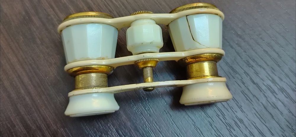 Винтажный театральный бинокль времен СССР в рабочем состоянии маленькая трещинка на пластике на корпусе не на что не влияет отдаляет и приближает линзы все в порядке .