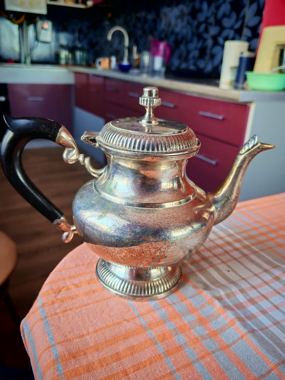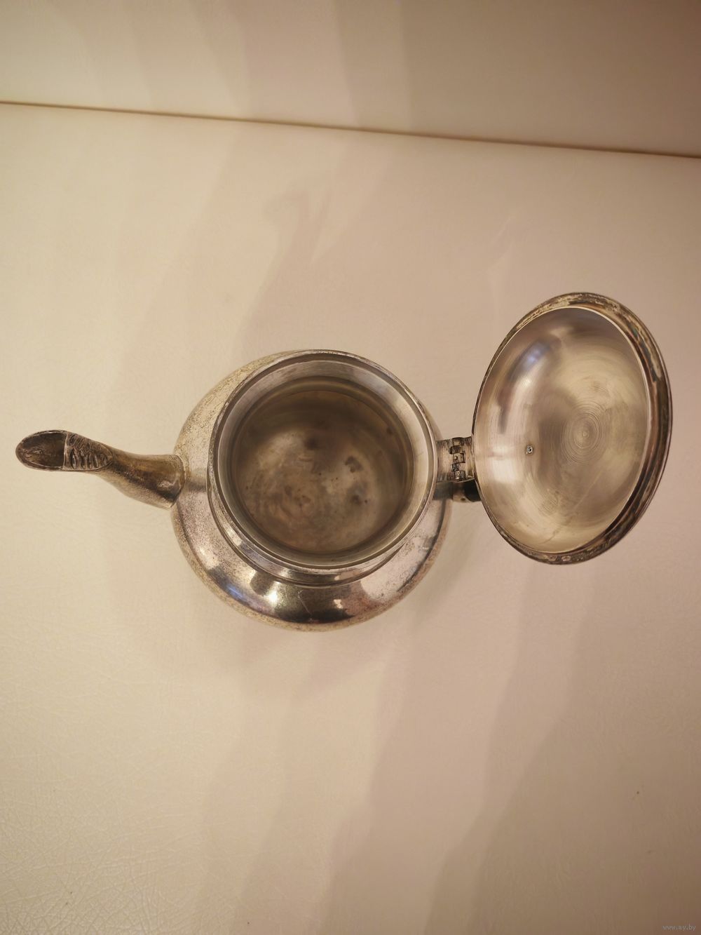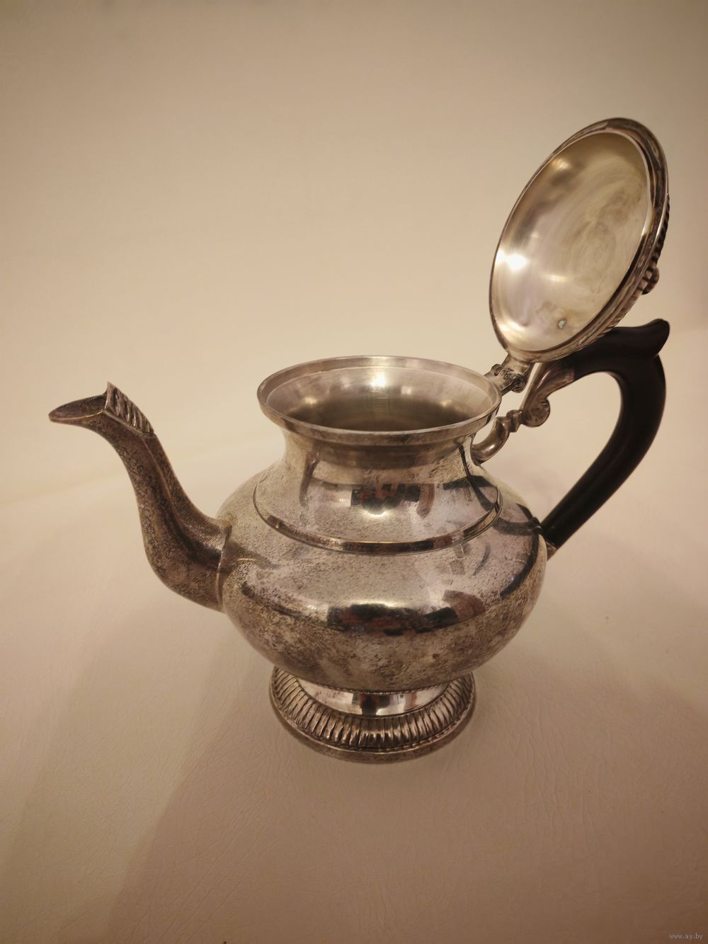 Чайник мельхиоровый, посеребрение. Вес 875 г. Высота 17 см.