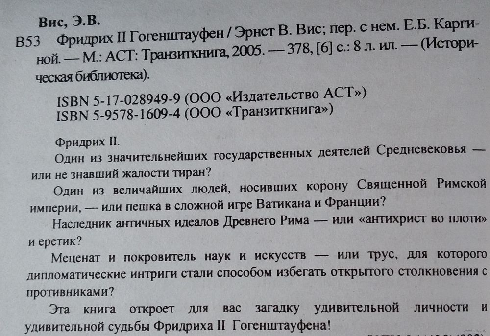 Вис Эрнст. Фридрих II Гогенштауфен. Историческая Библиотека М. Аст Транзиткнига 2005г. 378с. Твердый переплет, Обычный формат.