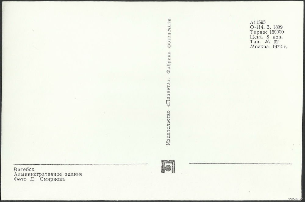 Витебск. Административное здание. Издательство Планета, 1972. Чистая. Передача в Витебске возле ратуши. Пересылка в другой город за счёт покупателя по тарифам Белпочты либо Европочты после 100% предоплаты.