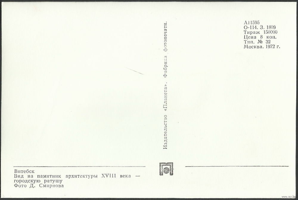 Витебск. Ратуша. Издательство Планета, 1972. Чистая. Передача в Витебске возле ратуши. Пересылка в другой город за счёт покупателя по тарифам Белпочты либо Европочты после 100% предоплаты.
