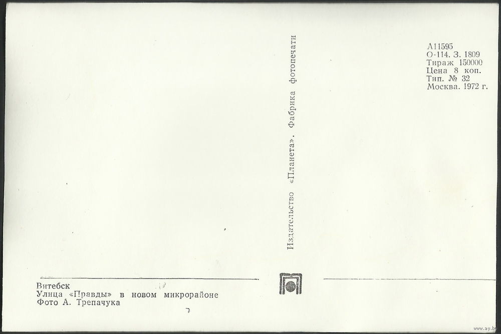Витебск. Улица Правды. Издательство Планета, 1972. Чистая. Передача в Витебске возле ратуши. Пересылка в другой город за счёт покупателя по тарифам Белпочты либо Европочты после 100% предоплаты.