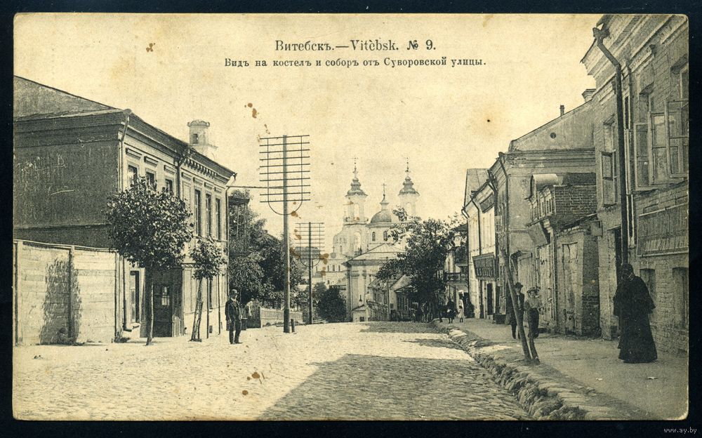 Витебск. Вид на костел и собор от Суворовской улицы. Издание Суворина