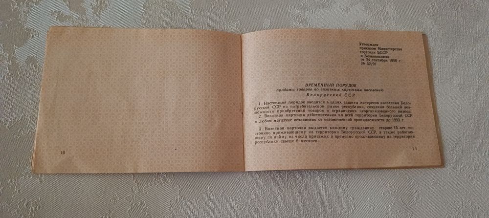 Визитная карточка покупателя (женский ассортимент) 1991.