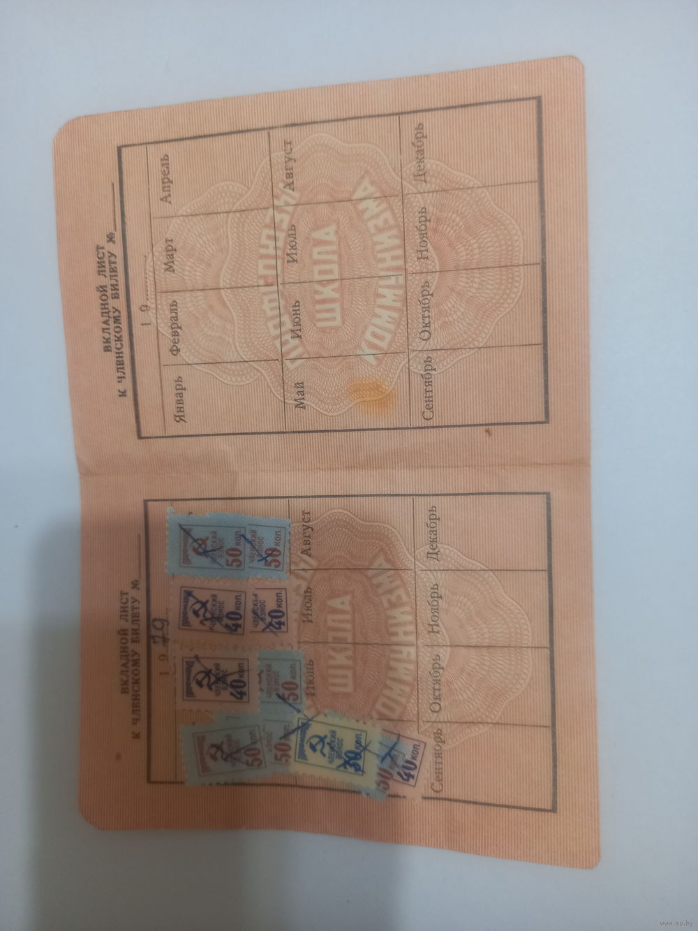 Вкладной лист к членскому билету профсоюзов 1978-79 с профмарками