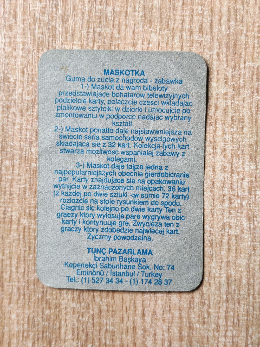 Вкладыш, фантик от жвачки. Жевательная резинка Maskotka гоночные автомобили. Карточка 90х годов Турция