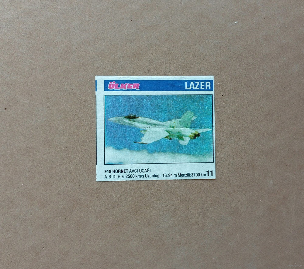 Вкладыш фантик военная техника: Lazer mini №11 самолет F-18 Hornet.