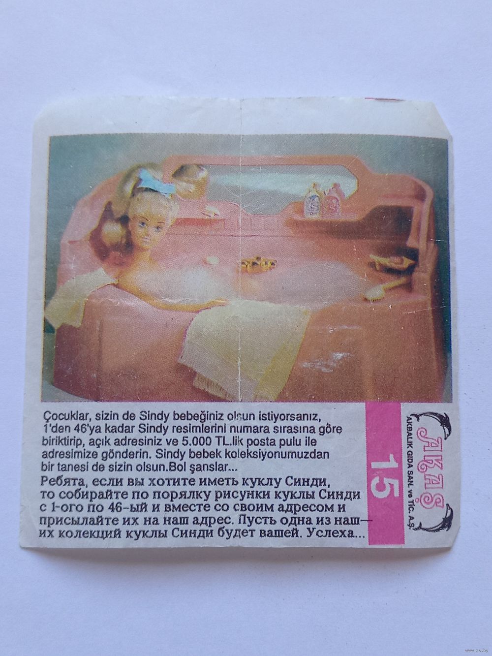 Вкладыш от жвачки Sindy Akas Синди номер 15