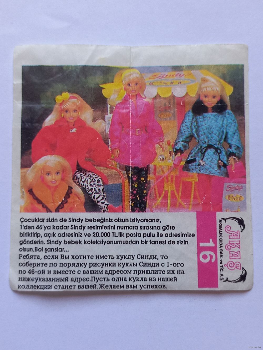 Вкладыш от жвачки Sindy Akas Синди номер 16