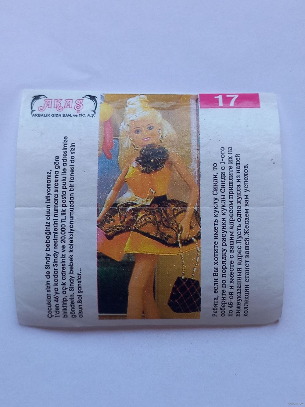 Вкладыш от жвачки Sindy Akas Синди номер 17