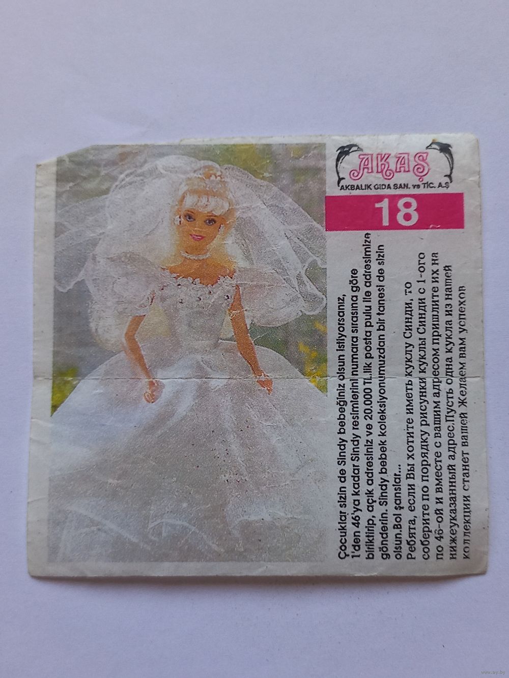 Вкладыш от жвачки Sindy Akas Синди номер 18