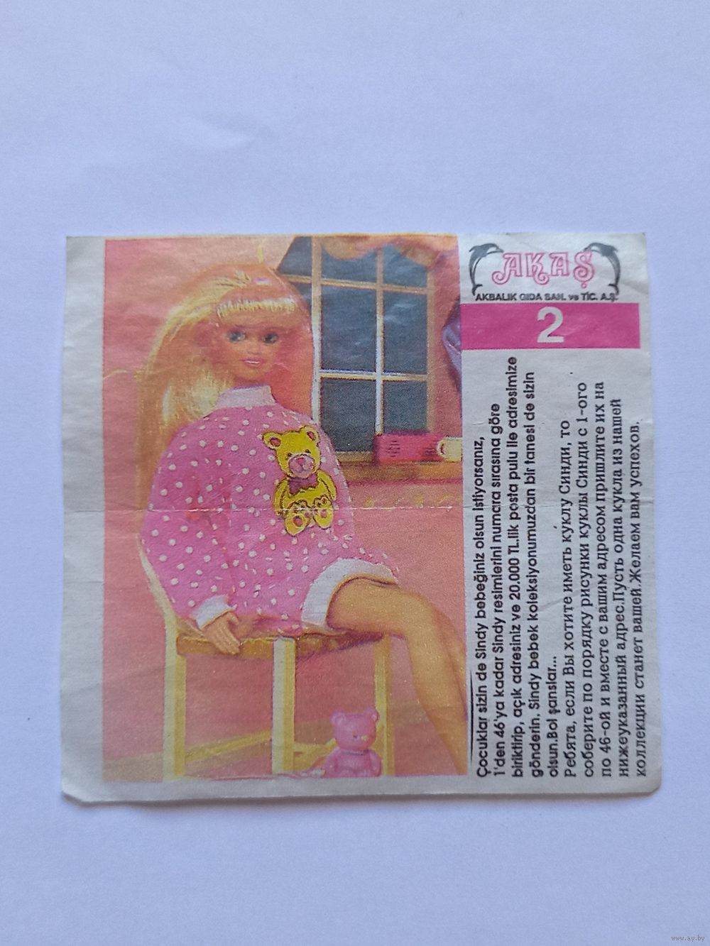 Вкладыш от жвачки Sindy Akas Синди номер 2
