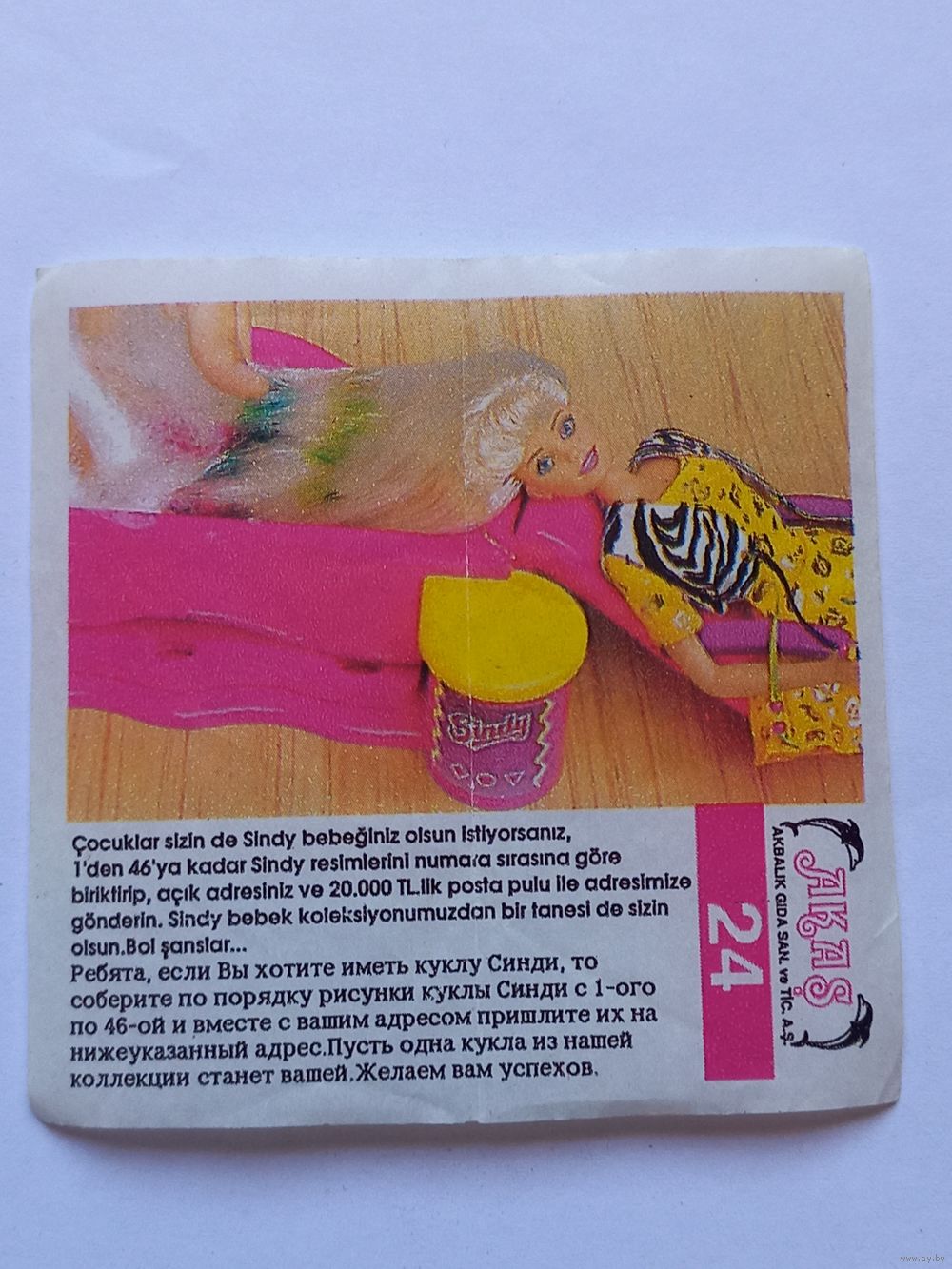 Вкладыш от жвачки Sindy Akas Синди номер 24