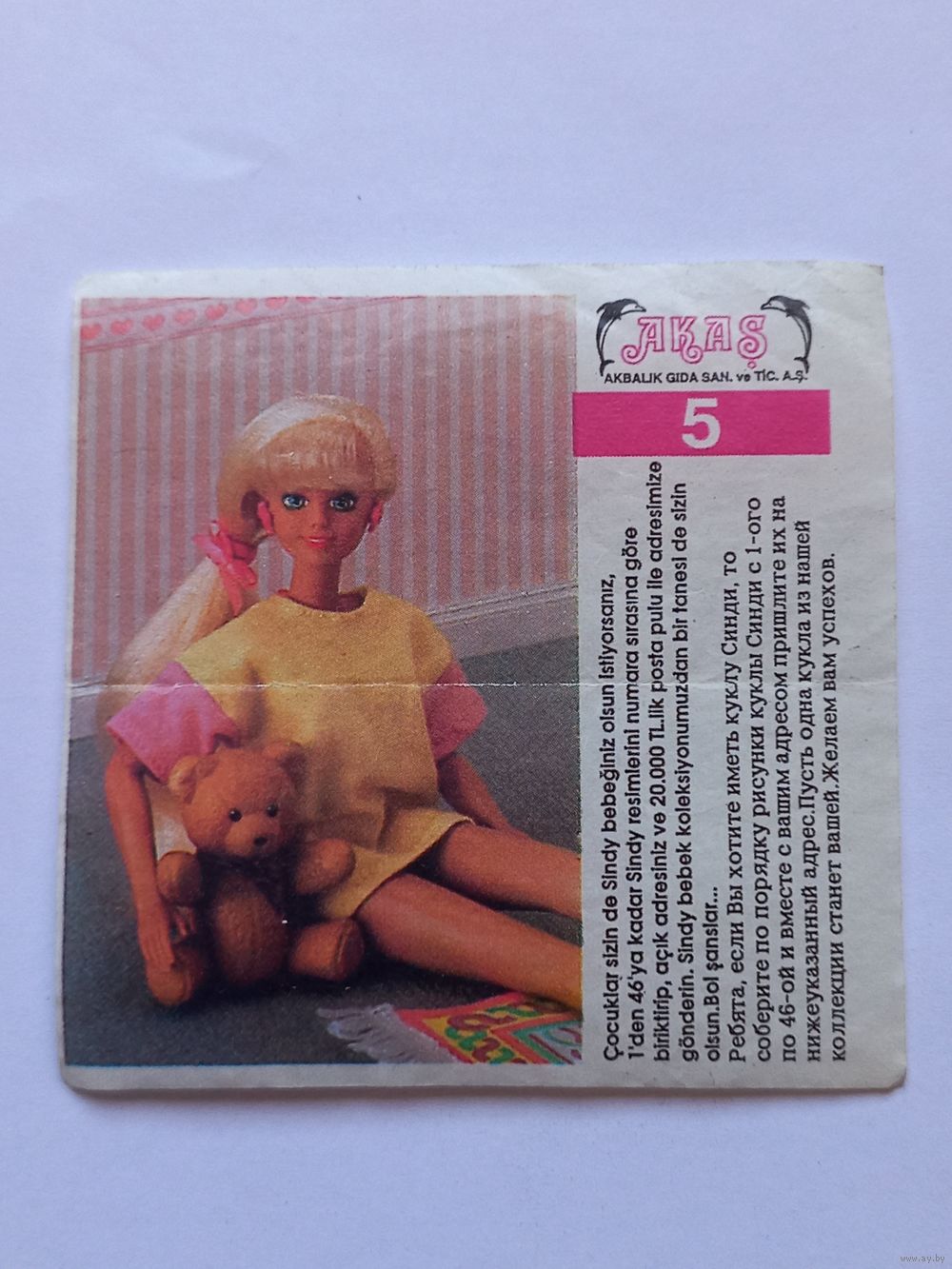 Вкладыш от жвачки Sindy Akas Синди номер 5