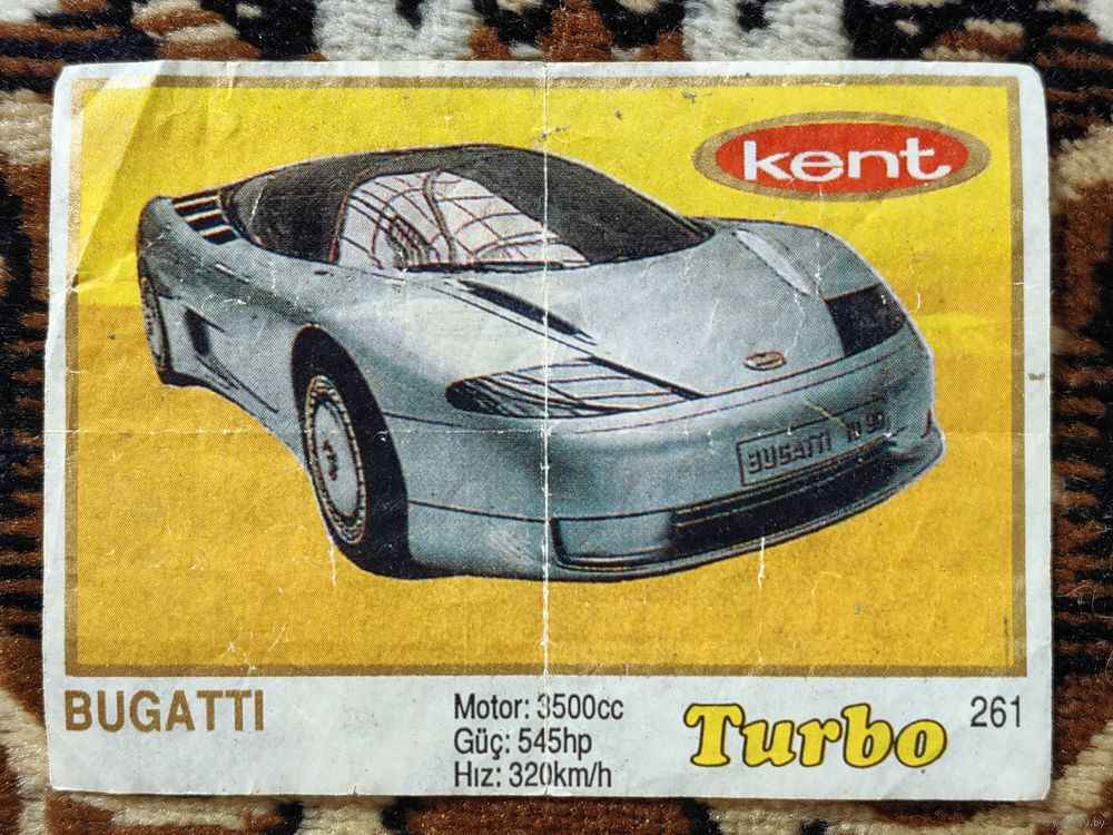 Вкладыш Turbo (Турбо) 5 серия (261-330, Yellow, золотая толстая рамка), номер 261, Bugatti. Возможен небольшой торг.