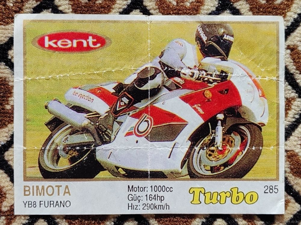 Вкладыш Turbo (Турбо) 5 серия (261-330, Yellow, золотая толстая рамка), номер 285, Bimota YB8 Furano. Возможен небольшой торг.