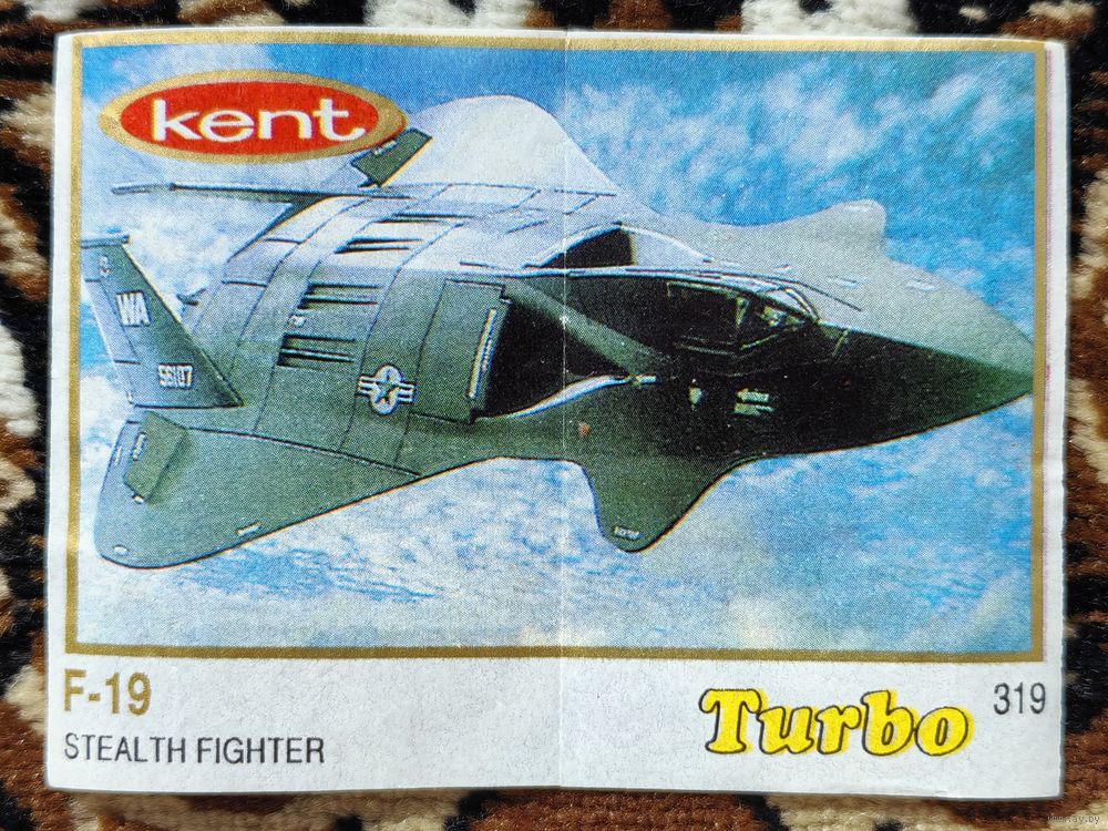 Вкладыш Turbo (Турбо) 5 серия (261-330, Yellow, золотая толстая рамка), номер 319, F-19 Stealth Fighter. Возможен небольшой торг.