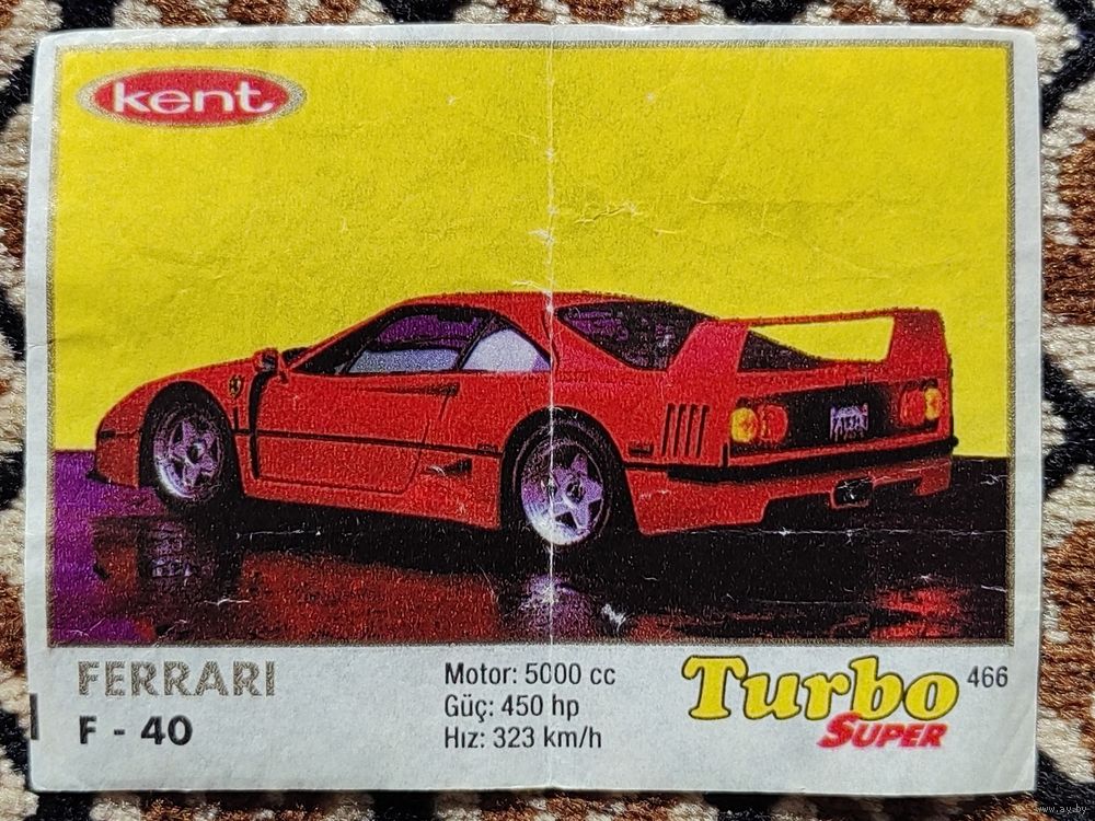 Вкладыш Turbo (Турбо) Super (серия 401-470, Супер), номер 466, Ferrari F-40. #2. Возможен небольшой торг.