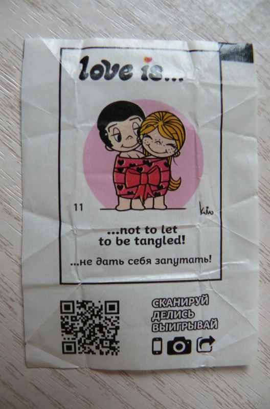 Вкладыш, жевательная конфета, Love is ... Любовь это ... (цена за 1 шт.) номер 11.