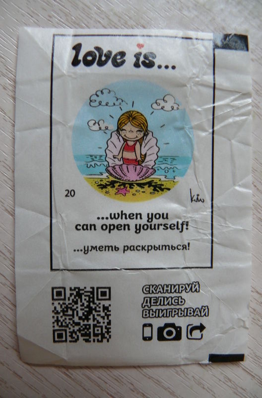 Вкладыш, жевательная конфета, Love is ... Любовь это ... (цена за 1 шт.) номер 20.
