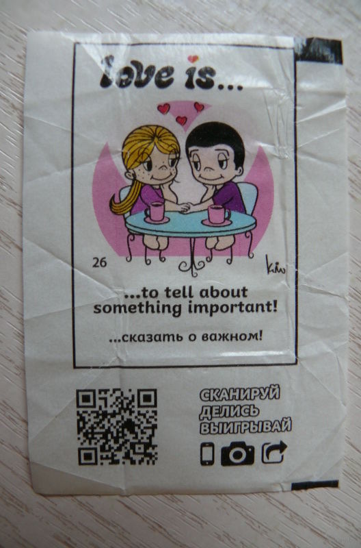 Вкладыш, жевательная конфета, Love is ... Любовь это ... (цена за 1 шт.) номер 26.