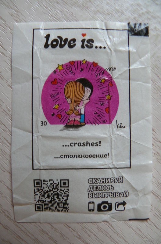 Вкладыш, жевательная конфета, Love is ... Любовь это ... (цена за 1 шт.) номер 30.
