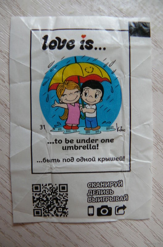 Вкладыш, жевательная конфета, Love is ... Любовь это ... (цена за 1 шт.) номер 31 (зонтик).