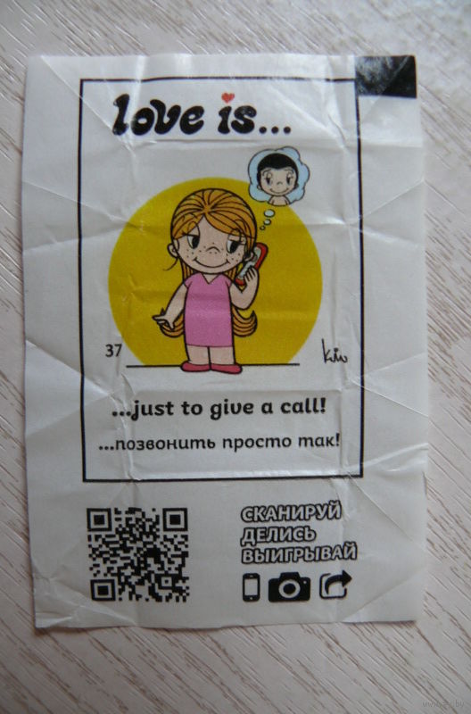 Вкладыш, жевательная конфета, Love is ... Любовь это ... (цена за 1 шт.) номер 37.