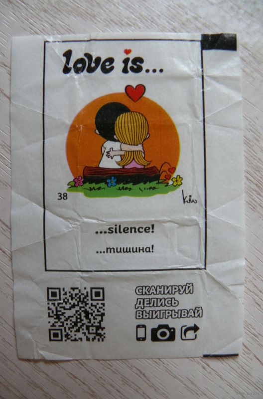 Вкладыш, жевательная конфета, Love is ... Любовь это ... (цена за 1 шт.) номер 38.