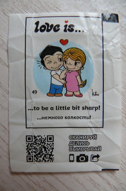 Вкладыш, жевательная конфета, Love is ... Любовь это ... (цена за 1 шт.) номер 49.