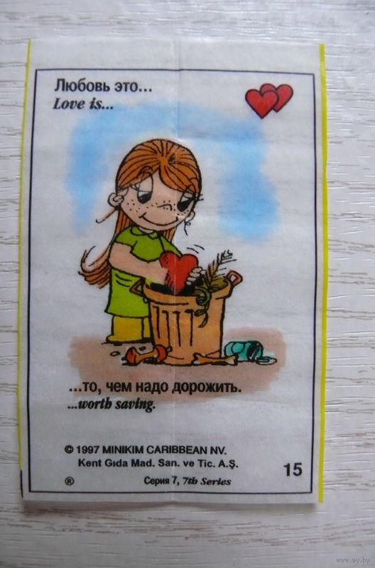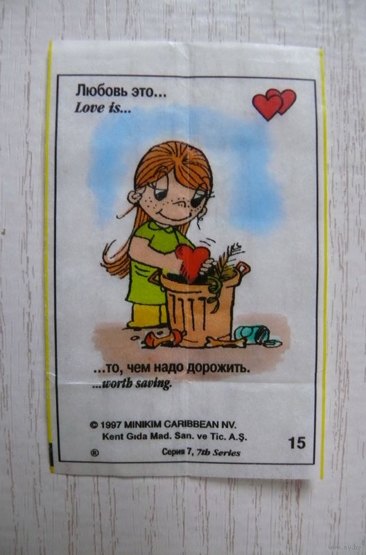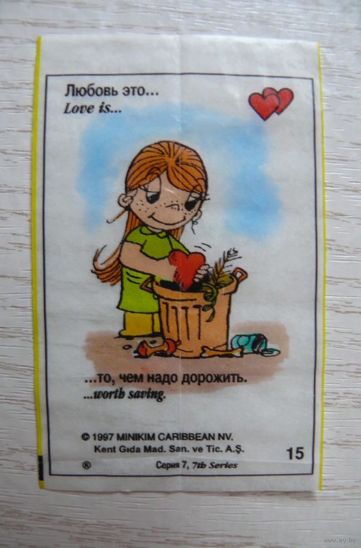 Вкладыш, жевательная резинка, Love is ... Любовь это ...; серия 7 (цена за 1 шт.) номер 15.