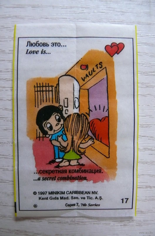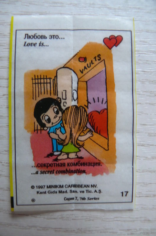 Вкладыш, жевательная резинка, Love is ... Любовь это ...; серия 7 (цена за 1 шт.) номер 17.