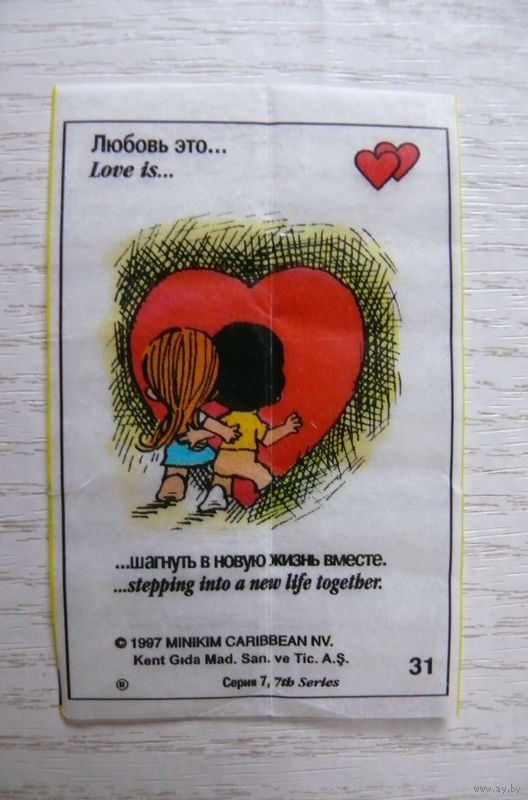 Вкладыш, жевательная резинка, Love is ... Любовь это ...; серия 7 (цена за 1 шт.) номер 31.