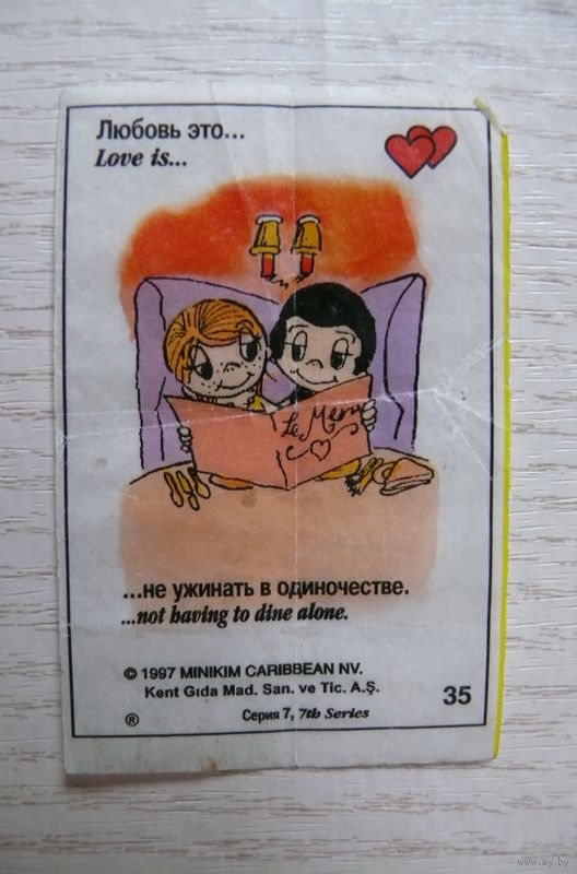 Вкладыш, жевательная резинка, Love is ... Любовь это ...; серия 7 (цена за 1 шт.) номер 35.