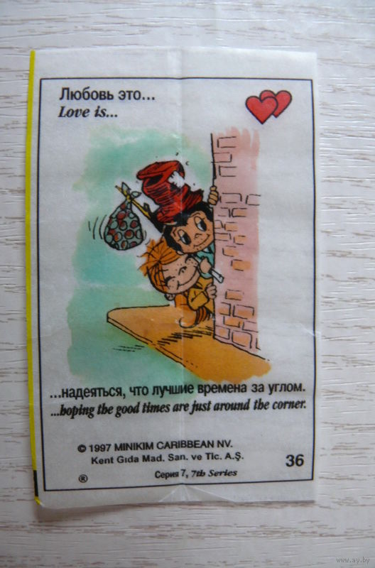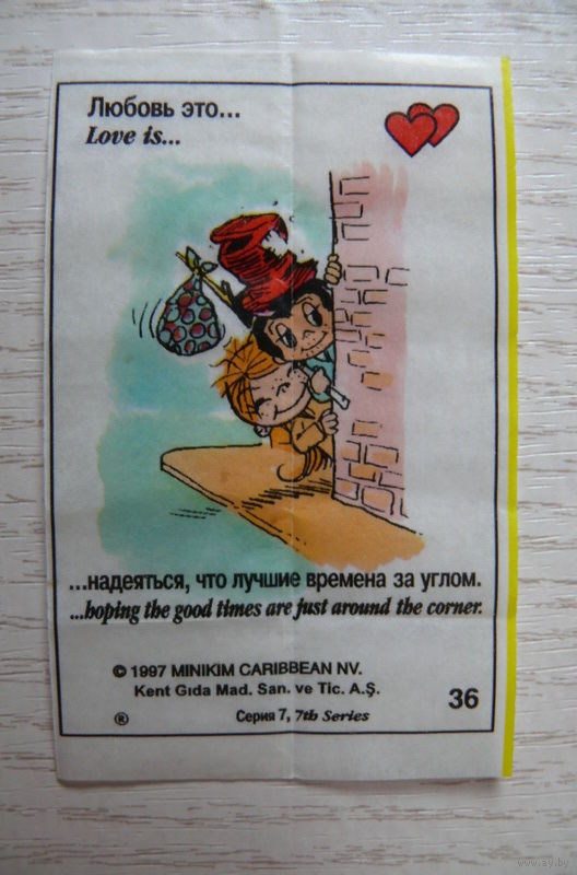 Вкладыш, жевательная резинка, Love is ... Любовь это ...; серия 7 (цена за 1 шт.) номер 36.