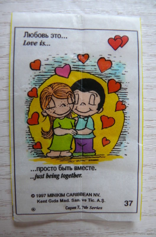 Вкладыш, жевательная резинка, Love is ... Любовь это ...; серия 7 (цена за 1 шт.) номер 37.