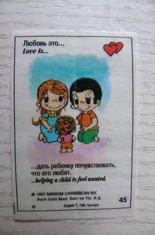 Вкладыш, жевательная резинка, Love is ... Любовь это ...; серия 7 (цена за 1 шт.) номер 45.
