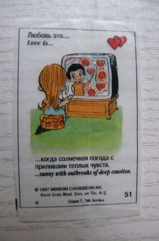 Вкладыш, жевательная резинка, Love is ... Любовь это ...; серия 7 (цена за 1 шт.) номер 51.